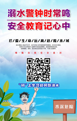 安全是大事,任何時(shí)刻都不能放松。夏季是溺水事故的高發(fā)期,隨著暑假的到來(lái),家長(zhǎng)和孩子們一定要提高警惕。掃“碼”學(xué)習(xí)防水知識(shí),關(guān)注安全,預(yù)防溺水,還可以保存到手機(jī),轉(zhuǎn)發(fā)到朋友圈,與身邊的朋友一起學(xué)習(xí)防溺水安全知識(shí)。